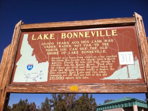 This morning we had breakfast at the same Crazy Cow Café. Those folks are focused on service and good food. Knowing that we had a long way to travel, we were on the road earlier than usual. Unfortunately time constraints kept us from stopping in Salt Lake City, about 200 miles from Beaver. When we spotted the Idaho line, we just pulled off on the shoulder of I-84 to take photos. At one of the rest stops shortly thereafter we saw this sign about Lake Bonneville.